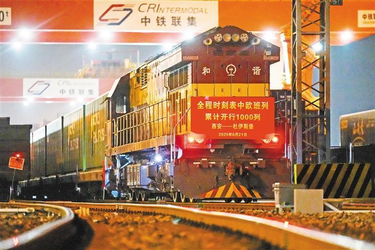 6月21日3时55分,随着满载汽车配件、LED显示屏等货物的X8155次全程时刻表中欧班列(西安—杜伊斯堡)从西安国际港站缓缓驶出,全程时刻表中欧班列累计开行1000列。中国铁路与沿线各国铁路共同推出的这一中欧班列新产品,以其稳定的运输时效受到境内外客户青睐和市场认可。