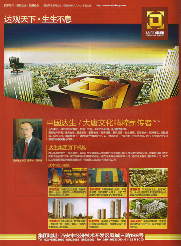 2012年12月3日,陕西省经济发展战略研究会驻会副会长张志军、总顾问樊光鼎、秘书长王跃文等一行前往西安达生集团考察。 达生集团董事长吴晓康先生向张会长一行介绍了集团公司经营情况。张志军会长对吴晓康及所属西安达生集团所取得的成绩给予了高度评价。会见后,张志军、樊光鼎等领导向吴总颁发了聘书。