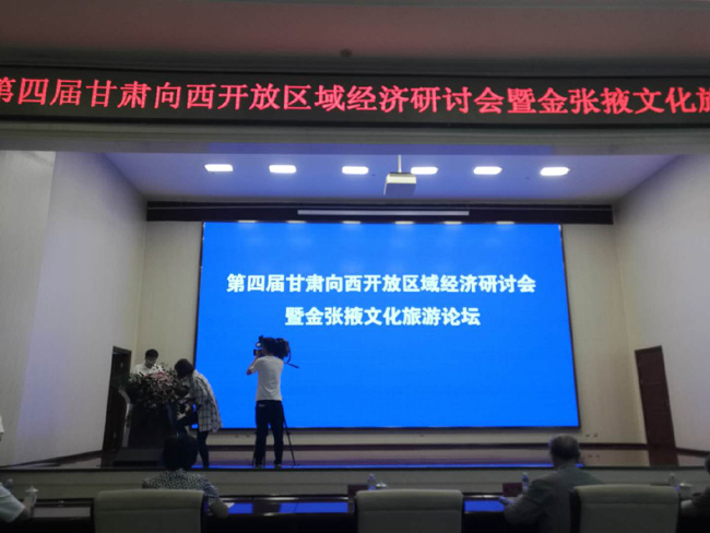 本网讯 第四届甘肃向西开放区域经济研讨会暨金张掖文化旅游论坛今天在丝绸之路名城张掖市开幕。会议由甘肃省区域经济与社会发展研究会、中共张掖市委宣传部、兰州文理学院共同主办。张掖市各部门负责人、甘肃省其他地市的代表以及来自北京、上海、四川、陕西的专家学者参加了会议。